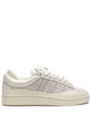 Bad Bunny did not disappoint with his first adidas Campus model which comes in a cream and cloud white colorway. The sneakers come with a longer suede material, and feature a stacked heel tab and tongue with Bad Bunnys logo located on the tongue. The sneakers also come with extra white laces and a dustbag.