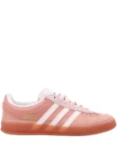 - The adidas Gazelle Indoor Bad Bunny Cabo Rojo (style JS5052) reimagines a terrace classic with bold color and street-ready flair. Dressed in the Wonder Clay/Wonder Quartz/Ash Pink palette, this pair pairs plush suede with tonal overlays and soft pastel hits for a look that’s both expressive and easy to style. The signature T-toe, serrated 3-Stripes, and low-profile silhouette honor the celebrated Gazelle lineage, while co-branded touches nod to the Bad Bunny collaboration in a way that feels confident and modern. Underfoot, a translucent gum sole delivers timeless indoor-court traction with a smooth, grippy ride, and a cushioned insole keeps every step comfortable from first wear to last call.