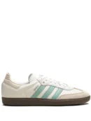 The adidas Samba OG Hazy Green (Women’s) is a modern take on the classic indoor soccer shoe, complete with an airy colorway of Cloud White, Wonder White, and Hazy Green.