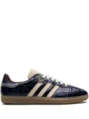 The adidas Samba Wales Bonner Navy Croc combines timeless design with premium craftsmanship. This limited-edition sneaker features a deep navy faux Croc-textured leather upper, accented by cream 3-Stripes and brown tones. Its co-branded tongue adds a signature touch, combining Wales Bonner’s modern aesthetic and adidas’s classic styling.