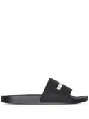 Made in Italy and with 100% rubber, this high fashion slide sandal sports a contoured footbed. The footbed and single strap are black. The focal point is the raised 3D Balenciaga logo in white seen on the forefoot strap. Balenciaga branding is also seen underfoot embossed on the outsole. Thanks to the black colorway, scuffs and bumps won’t show up. These pool slide sandals pair well with casual fashion styles, especially around pool and beach events, so wear them all you want.