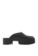 ucci loves to debut new twists on its most iconic designs. Now, it’s time for an update on the beloved rubber sandals. These shoes are inspired by clogs with their closed-toe, slip-on design. A chunky, lug platform sole and block heel update the classic silhouette, along with a perforated monogram.